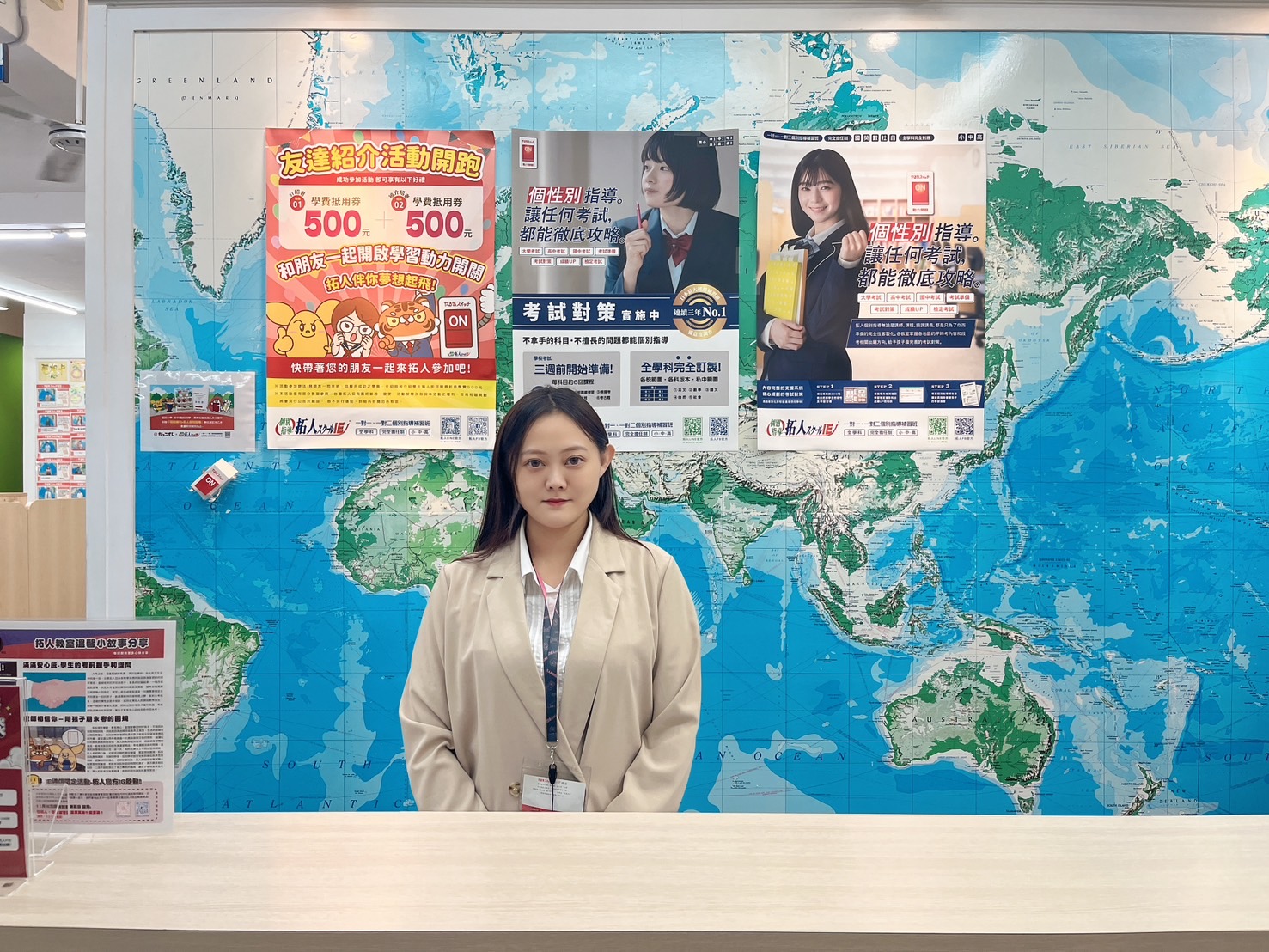 轉眼間我來到拓人也有三年了,國三會考生除了複習,同時也有新進度需要學習,時間常常不敷使用,在家裡我總是一直分心,感謝拓人和室長提供了一個舒服的空間讓我靜下心讀書。有了拓人,我得到了滿意的成績,也享受了豐沛的題庫資源,最重要的是老師和室長的耐心指導,謝謝拓人:)